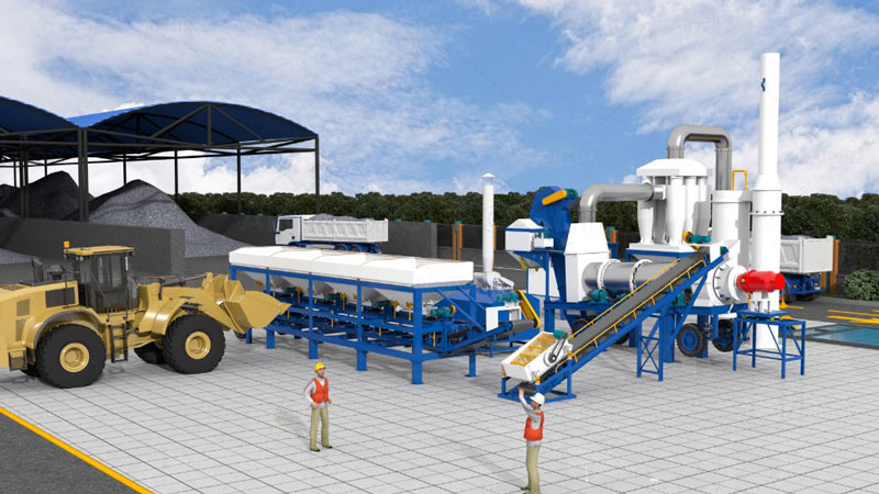 - Drying and Heating System: Prepares the aggregates for mixing by removing moisture and ensuring they are at the right temperature for bonding with the bitumen.