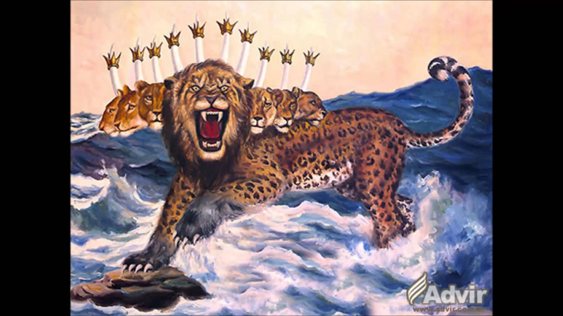 E vidi salire dal mare una bestia che aveva dieci corna e sette teste, sulle sue corna dieci diademi e sulle sue teste un nome blasfemo.