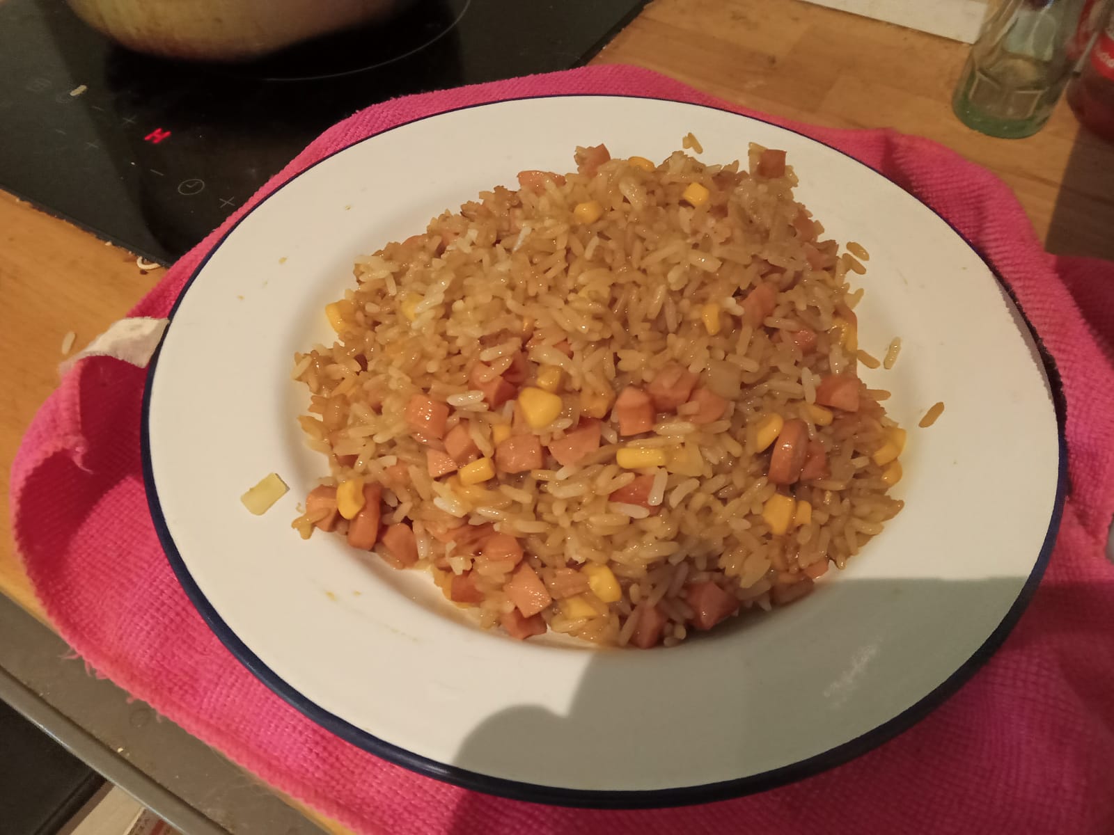 Your hotdogs and corn fried rice are now ready to be served! Plate it up and relish the delightful combination of smoky hotdogs, sweet corn, and fluffy rice. This dish is a perfect balance of flavors and textures, making it a fantastic meal option for any occasion.