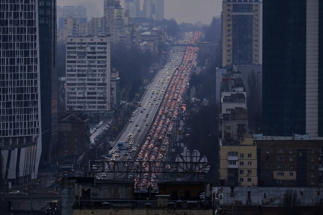 Residents of Kyiv flee as Russia strikes the city early on Feb. 24, 2022, effectively launching a full-scale invasion of Ukraine. (Getty Images)
