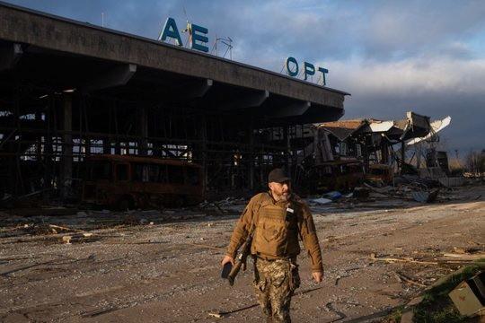 LYMAN, DONETSK OBLAST: A Ukrainian serviceman receives medical treatment from a shrapnel wound in a medical unit in Lyman city, Ukraine, Dec. 1, 2022. (Photo by Narciso Contreras/Anadolu Agency via Getty Images)