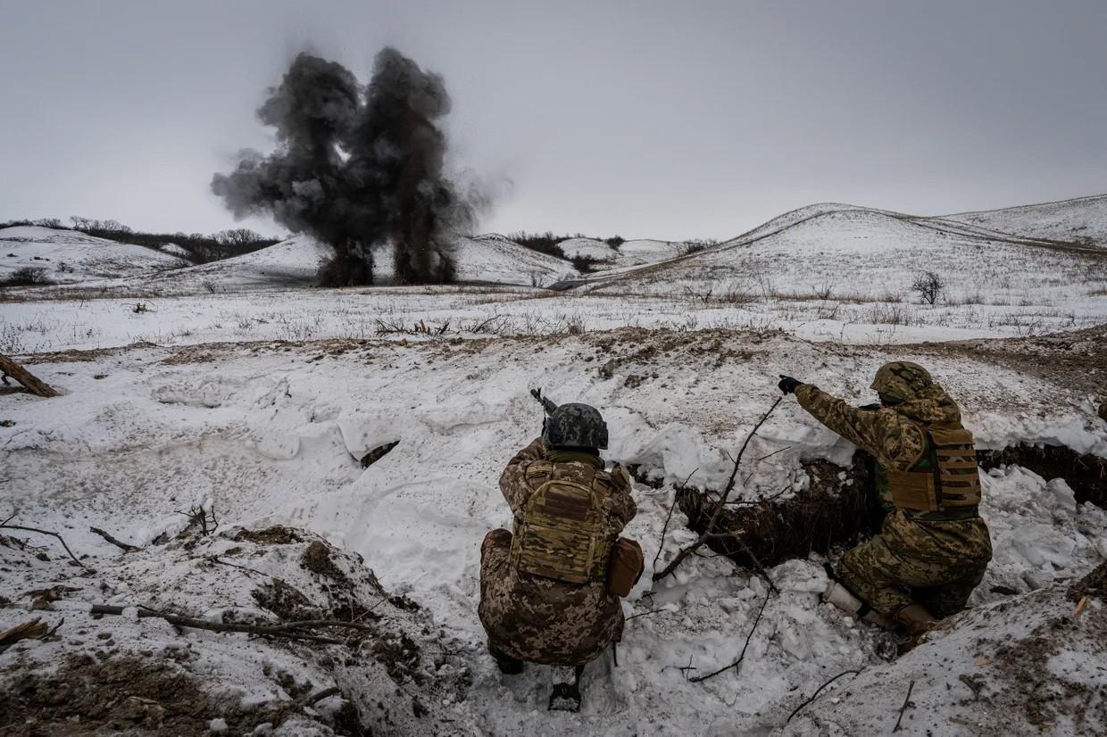 Ukrainian soldiers firing with a self-propelled gun (SPG), in the direction of Bakhmut in Donetsk Oblast, where clashes between Russian and Ukrainian forces continue, on Feb. 4, 2024. (Diego Herrera Carcedo/Anadolu via Getty Images)
