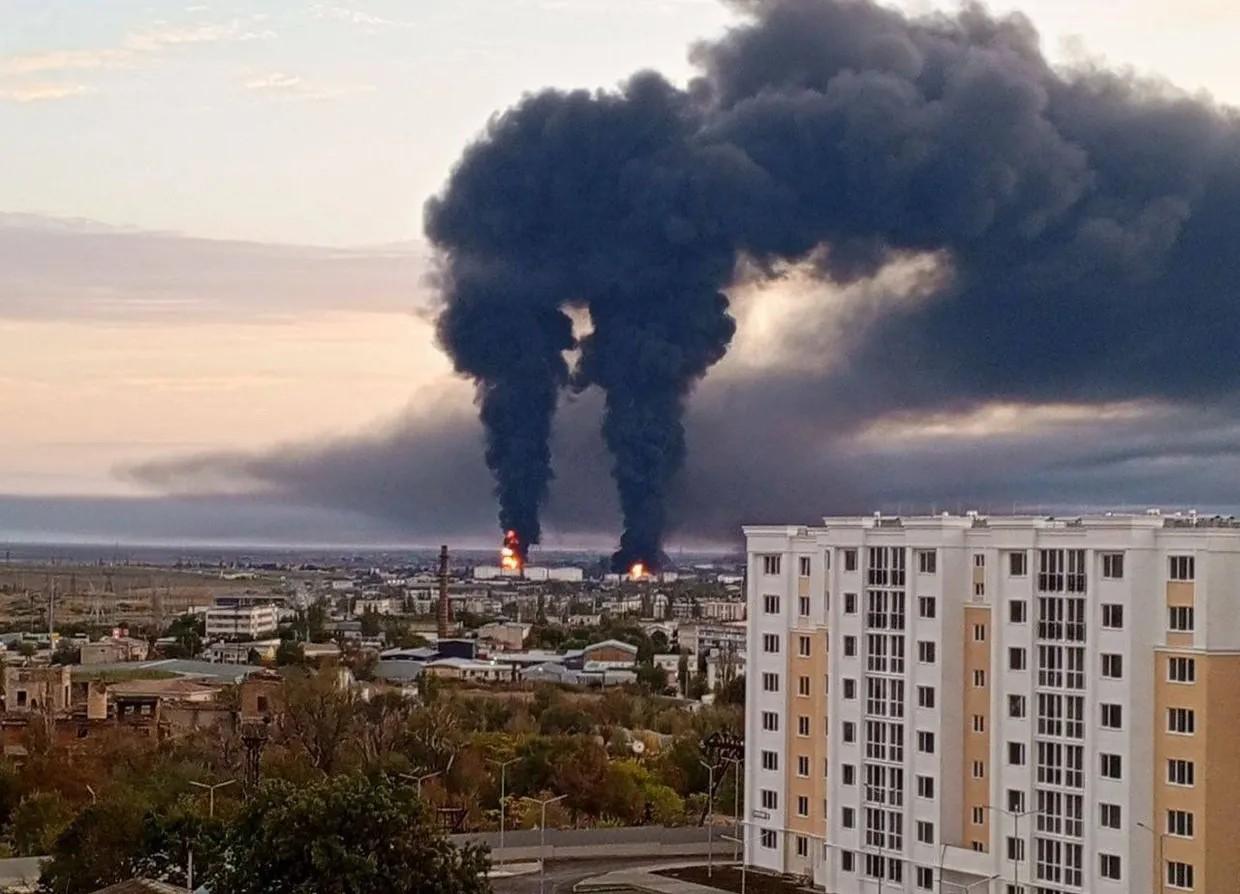 Oil depot on fire in Crimea’s Feodosia following drone attack. A fire erupted at an oil depot in Russia-occupied Feodosia in the early hours of Oct. 7, reportedly following a drone attack, according to Russian media.