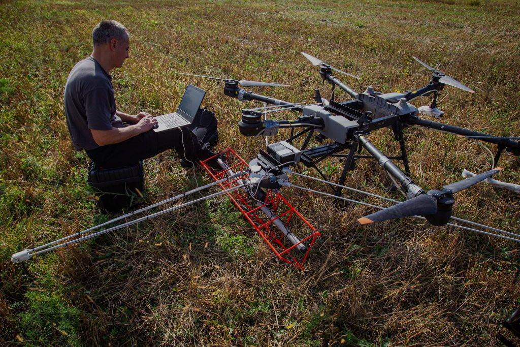 Members of a drone unit of Brigade 28th of Ukrainian Army scout for Russian positions using a modified flying device in the front line nearby Kurdiumivka in Donetsk Oblast, Ukraine, Oct. 03, 2023. (Photo by Narciso Contreras/Anadolu Agency via Getty Images)